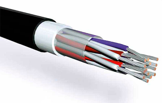 Кабель с многопроволочными токопроводящими жилами из медных луженых проволок, с изоляцией и оболочкой из полимерных материалов пониженной пожароопасности, с пониженным дымо- и газовыделением, не распространяющий горение при групповой прокладке по категории А, без экранов, без брони, с круглым поперечным сечением и подложкой, полученной методом экструзии, с негигроскопичными заполнителями.