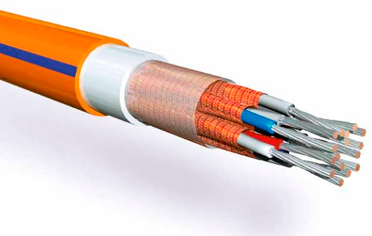 Кабель с многопроволочными токопроводящими жилами из медных луженых проволок, с изоляцией и оболочкой из полимерных материалов пониженной пожароопасности, с пониженным дымо- и газовыделением, не распространяющий горение при групповой прокладке по категории А, с пятью индивидуально экранированными тройками (экран в виде оплетки или обмотки из медных проволок), без брони, с круглым поперечным сечением и подложкой под оболочкой, полученной методом экструзии, с негигроскопичными заполнителями.