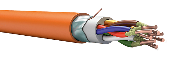 Проводник: однопроволочные медные жилы сечением от 0,5 до 6,0 мм2, на проводник наложен огнестойкий барьер из двух слюдосодержащих лент.