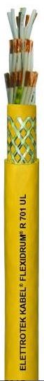 Кабели производства компании Elettrotek Kabel серии FLEXIDRUM R 701 UL, обладают превосходными электрическими и механическими характеристиками, выдерживают высокие уровни нагрузок, при этом располагают оптимальным соотношением гибкости и упругости. Кабели данного типа, имеют жёсткую поверхность с высокой износостойкостью.