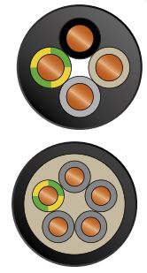 Разметка жил: 3G: зеленый / желтый, синий, коричневый; 4G: зеленый / желтый, коричневый, черный, серый; 5G: зеленый / желтый, синий, коричневый, черный, серый;
