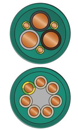 Разметка жил: для 4G и 3 + 3: коричневый, черный, серый; свыше черные с печатными номерами; провод заземления зелено-желтый, ;