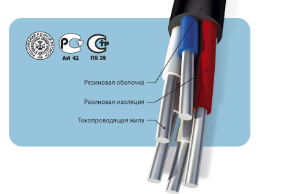 Изоляция из резины, оболочка из ПВХ пластиката |