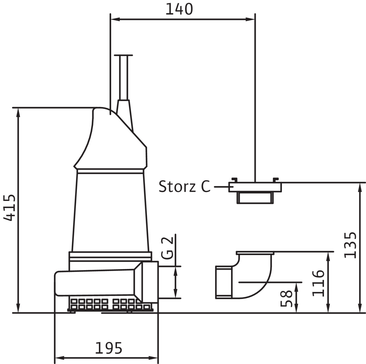 Полностью погружной дренажный насос для вертикальной установки в погруженном состоянии для перекачивания загрязненной или содержащей песок воды. Гидравлический корпус и рабочее колесо из серого чугуна, корпус электродвигателя из алюминия. Вариант исполнения GG полностью выполнен из серого чугуна; по желанию заказчика на корпус может быть нанесено керамическое покрытие. Напорный патрубок с вертикальным патрубком напорного слива и муфтой Storz. Самоохлаждающиеся электродвигатели с камерой уплотнений, в исполнении для однофазного тока, разъемным соединительным кабелем со штекером с защитным контактом и конденсатором. Герметизация камеры уплотнений осуществляется с помощью двух скользящих торцевых уплотнений для обоих направлений вращения. Серия без ограничений подходит для эксплуатации в режиме с подсосом воздуха.