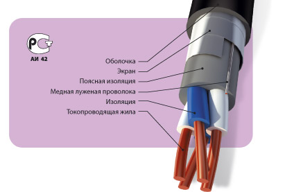 В кабелях марки КСППБ, КСПЗПБ поверх экрана накладывается броня из стальной ленты с битумным покрытием и оболочка из ПЭ.