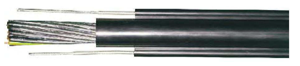 Контрольный кабель для панелей управления подъемников, тельферов, конвейеров. Диаметрально расположенные и связанные с наружной оболочкой стальные сердечники берут на себя всю растягивающую нагрузку. Можно использовать как внутри, так и вне помещений при температуре до - 30ºС.