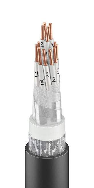 Кабель для систем промышленной автоматики, с однопроволочными токопроводящими жилами из медных проволок с изоляцией и оболочкой из полимерных материалов, без экранов, с броней из стальных оцинкованных проволок.