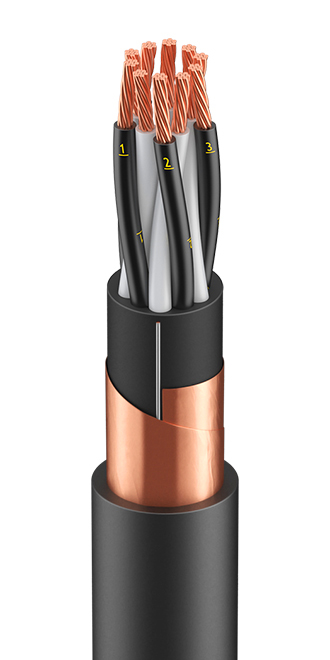 Кабель для систем промышленной автоматики, с токопроводящими жилами из медных проволок с заполнением сердечника, с изоляцией и оболочкой из полимерных материалов, с общим экраном, без брони.