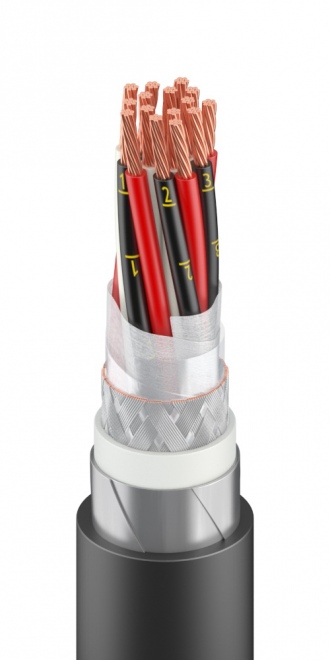 Кабель для систем промышленной автоматики, с токопроводящими жилами из медных проволок с изоляцией из сшиваемой полиолефиновой композиции, оболочкой из полимерных материалов, с общим экраном, с броней из стальных оцинкованных лент.