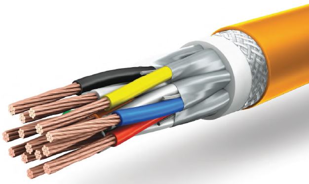 Кабель с многопроволочными токопроводящими жилами из медных луженых проволок, с изоляцией и оболочкой из полимерных компаундов, не содержащих галогенов, не распространяющий горение при групповой прокладке по категории А и не выделяющий коррозионно-активных газообразных продуктов при горении и тлении, с семью индивидуально экранированными фольгированным материалом парами, с броней из стальных оцинкованных проволок.