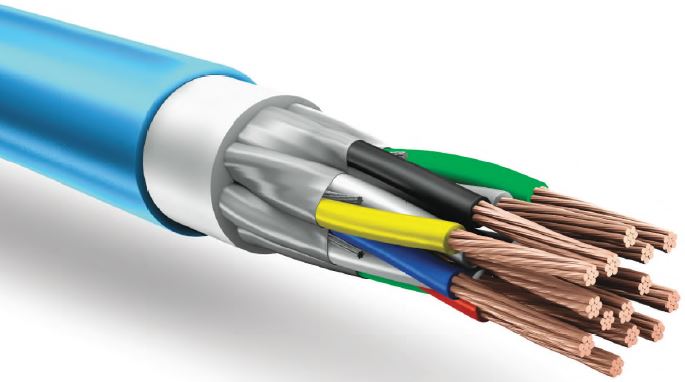 Кабель с токопроводящими жилами из медных проволок с изоляцией и оболочкой из по-лимерных материалов, соответствующих требуемому показателю пожарной опасности, с индивидуально экранированными фольгированным материалом элементами, без брони, с круглым поперечным сечением и подложкой, полученной методом экструзии, и любыми негигроскопичными заполнителями.