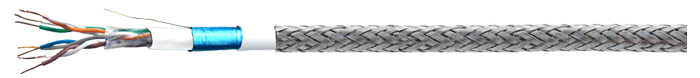 | Кабель симметричный парной скрутки предназначен для групповой стационарной прокладки в структурированных кабельных системах (локальных компьютерных сетях) в соответствии с международным стандартом ИСО/МЭК 11801 и соответствуют требованиям стандартов МЭК 61156-5 и ANSI/TIA/EIA-568-А. Находится в стадии включения в перечень изделий, разрешенных к применению в ВВТ. Соответствует требованиям нормативных документов «Технического регламента о пожарной безопасности», в том числе установленным в ГОСТ Р 53315-2009 (п.5.3, ПРГП 4) по нераспространению горения при групповой прокладке (категория D) и имеет соответствующий сертификат пожарной безопасности. Имеет свидетельство о типовом одобрении Российского Морского Регистра Судоходства. Класс пожарной опасности кабеля по ГОСТ Р 53315–2009 – П4.8.1.2.2. Эксплуатируется внутри помещений. Выдерживает продольное и поперечное гидростатическое давление до 60 атм (6 МПа). Работоспособен в условиях изменения атмосферного давления, циклической смены температур. Допускает прокладку в затапливаемых помещениях. | Пары с однопроволочными медными жилами диаметром 0,52 мм, с изоляцией из сплошного полиэтилена. В общем экране из ламинированной алюминиевой фольги с контактным проводником из медной луженой проволоки, наложенном поверх поясной изоляции из безгалогенной полимерной композиции. Воздушные промежутки в кабеле заполнены герметиком. Пары имеют цветовую кодировку изоляции. Оболочка из безгалогенной полимерной композиции повышенной масло-бензостойкости белого цвета. |