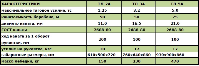 Лебедки ручные ТЛ-2А / ТЛ-3А / ТЛ-5А предназначены для вертикального, горизонтального или наклонного перемещения грузов при монтажных и погрузочно-разгрузочных работах. В корпусе лебедки, состоящем из двух боковин соединенных стяжными болтами, монтируются барабан, передаточный механизм и фузоупорный тормоз. Лебедки снабжаются двумя съемными рукоятками. Предусмотрена возможность изменения скорости намотки каната путем изменения передаточного числа механизма лебедки.