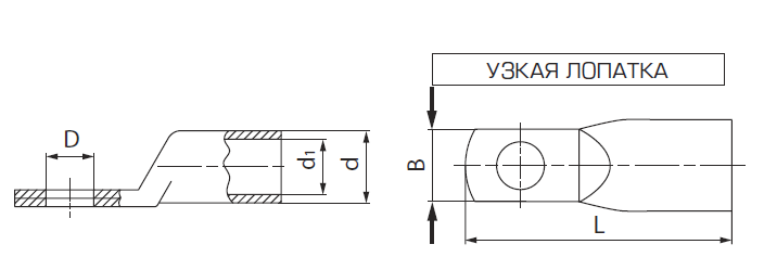 Медные кабельные наконечники ТМЛ-У (КВТ) с узкой лопаткой