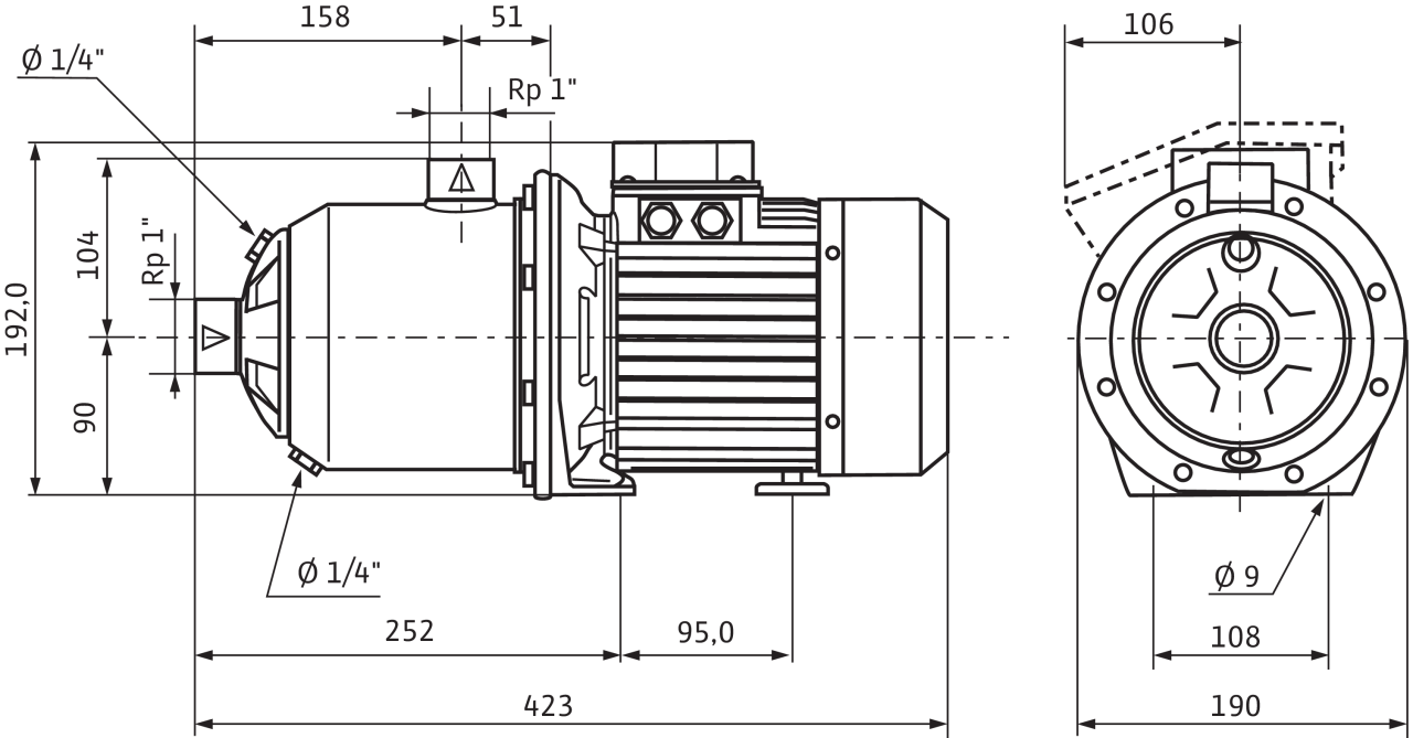 | Номинальный внутренний диаметр патрубков с напорной стороны Rp | 1 |