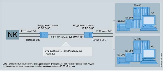 Пример применения модульных соединителей IE FC RJ45 в100 и 1000 Мбит/с сетях