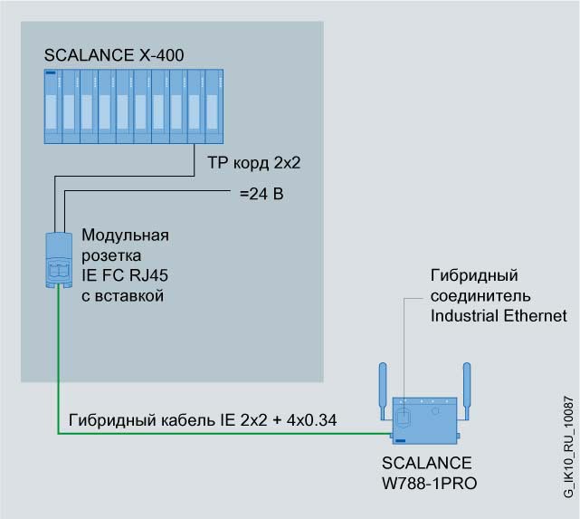 Конфигурация с использованием модульного соединителя IE FC RJ45 с одним гигабитным портом, а также соединителя IE FC RJ45