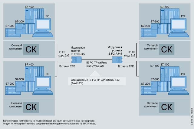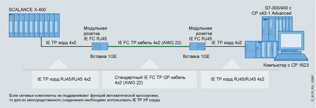 Пример применения модульных соединителей IE FC RJ45 в100 и 1000 Мбит/с сетях