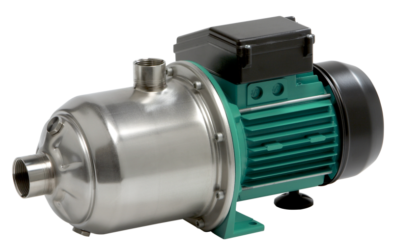 Многоступенчатый нормальновсасывающий горизонтальный высоконапорный центробежный насос блочного типа с низким уровнем шума с горизонтальным всасывающим и вертикальным напорным патрубком. Со сквозным насосным валом электродвигателя и не зависящим от направления вращения скользящим торцовым уплотнением.