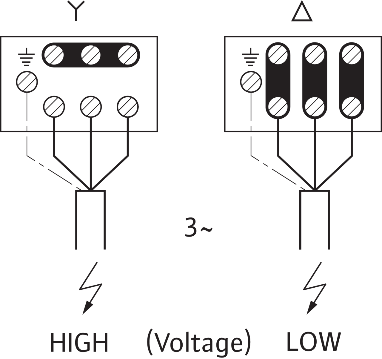 Подключение к сети 3~, стандартное исполнение230/400 В