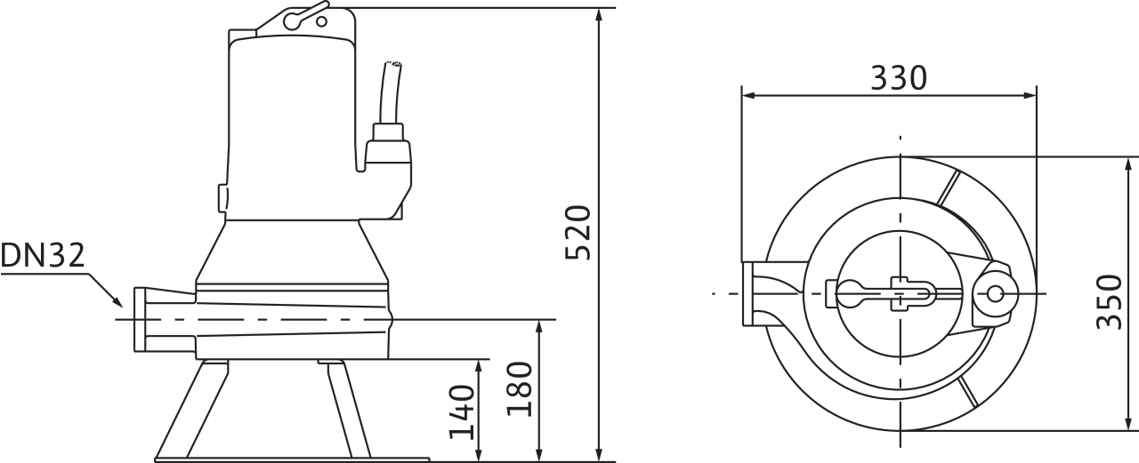 Полностью погружной дренажный насос для сточных вод с внешним режущим механизмом для вертикальной установки в погруженном состоянии, для перекачивания сточных вод с фекалиями, а также для коммунальных и промышленных сточных вод с длинноволокнистыми фракциями. Агрегат полностью выполнен из серого чугуна, уплотнение со стороны насоса выполнено из карбида кремния (SiC/SiC). Напорный патрубок с горизонтальным патрубком напорного слива с резьбовым или фланцевым соединением. Электродвигатель насоса с сухим ротором в исполнении для трехфазного тока с защитой электродвигателя от перегрева и масляной камерой. Водостойкий соединительный кабель длиной 10 м со свободным концом. Все агрегаты обладают сертификатом взрывозащиты.