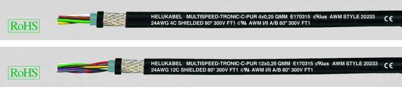 Характеристики — MULTISPEED®-TRONIC-C-PUR, стойкий к изгибам кабель для буксируемых цепей, особо гибкий, экранированнный, ЭМС, безгалогеновый, с разметкой метража