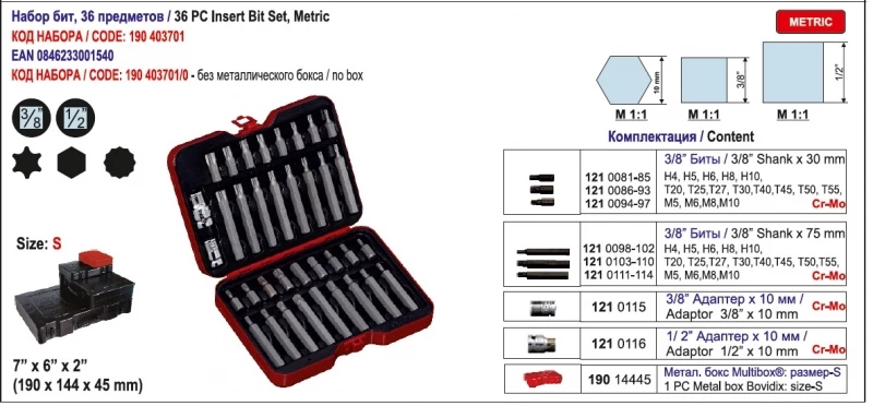 Набор бит, метрический, 36 предметов. Код заказа 190403701