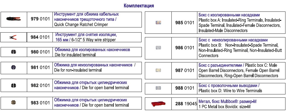 Набор для обжима кабельных наконечников.87 предметов. Код заказа 288308701