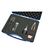 состоящий из инструмента для удаления оболочки, буферного инструмента для удаления оболочки, кевларовых ножниц, инструмента для обрезки волокна и микроскопа.