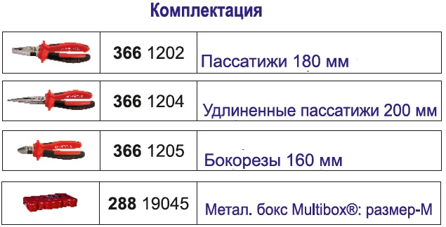 Наборы изолированных плоскогубцев. Код заказа 288400302