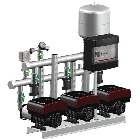 Стандартные станции повышения давления Hydro Multi-E включают в себя два или три насоса CME-A, CME-I, соединённых параллельно и смонтированных на общей раме-основании со всей необходимой арматурой.