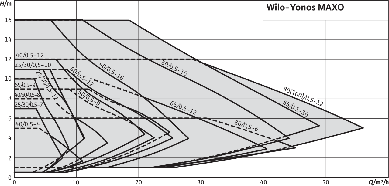 | Yonos MAXO 65/0,5-16 | 55.5 м3/ч | 17.1 M | ≤ 0.20 | - | DN 65 | 6/10 бар | 340 мм | 1~230 V, 50/60 Hz | 31.0 кг | 2120655 |