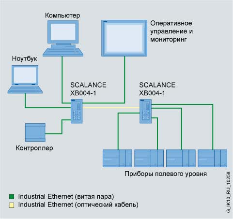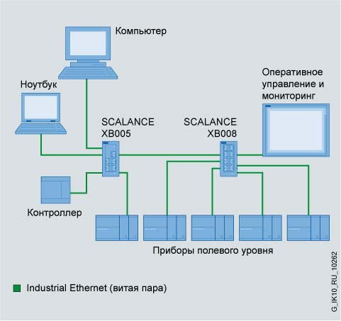 - Неуправляемые коммутаторы Industrial Ethernet серии SCALANCE XB-000 позволяют создавать рентабельные решения по построению небольших линейных или звездообразных структур коммутируемых сетей на уровне производственных машин или приборов.