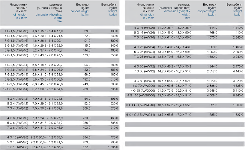 согл. VDE 0293-308 до 5 жил: цветная маркировка, более 6 жил: черные жилы с белой цифровой маркировкой, с желто-зеленой жилой. |