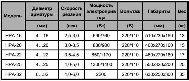 Характеристики — Ножницы арматурные с электроприводом Серия НРА-16,НРА-20,НРА-22,НРА-25,НРА-32