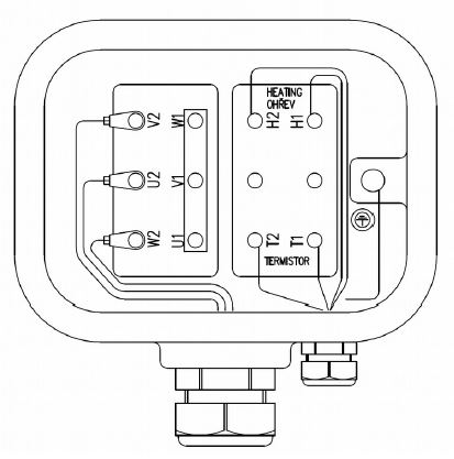 Вибраторы могут быть оснащены термисторoм и нагревательной катушкой (вариант ....-TO) Термистор это функция безопасности, которая защищает обмотки вибратора от перегрева. Подключение в кабинетe должно быть сделано таким образом, чтобы двигатель вибраторa при достижении повышенной температуры обмотки 120°C (термистор включает) был отключен/отключилься .
