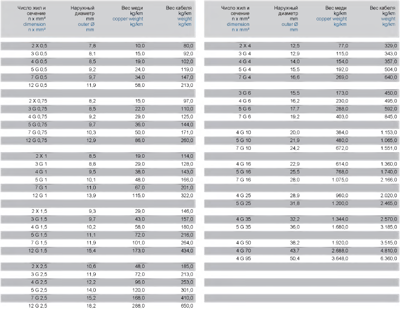 до 16mm2 Uo/U 300/500V; более 25mm2 Uo/U 0,6/1kV. |
