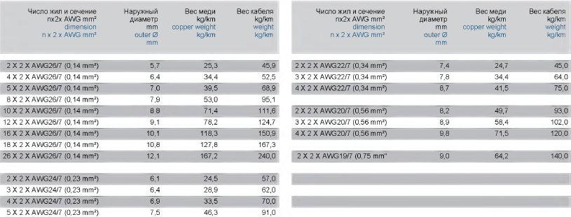 2 жилы скручены в пару, послойный повив пар с оптимальными шагами скрутки |