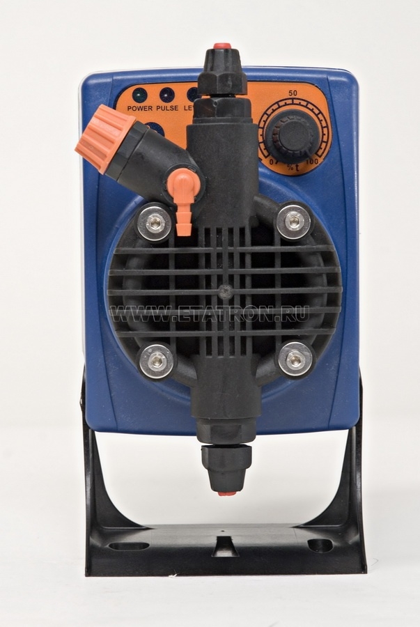 Насос имеет два основных режима работы. Режим 1. Пропорциональный 1х1: один принятый импульс от расходомера = 1 инжекции насоса.Режим 2. Дозирование во временном интервале 1х(0-60 сек.):один принятый импульс от расходомера = дозация в интервале 0-60 сек.