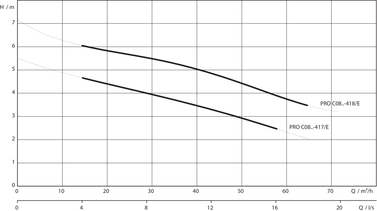 Характеристики согласно ISO 9906, приложение A. Указанный коэффициент полезного действия соответствует гидравлическому коэффициенту полезного действия.