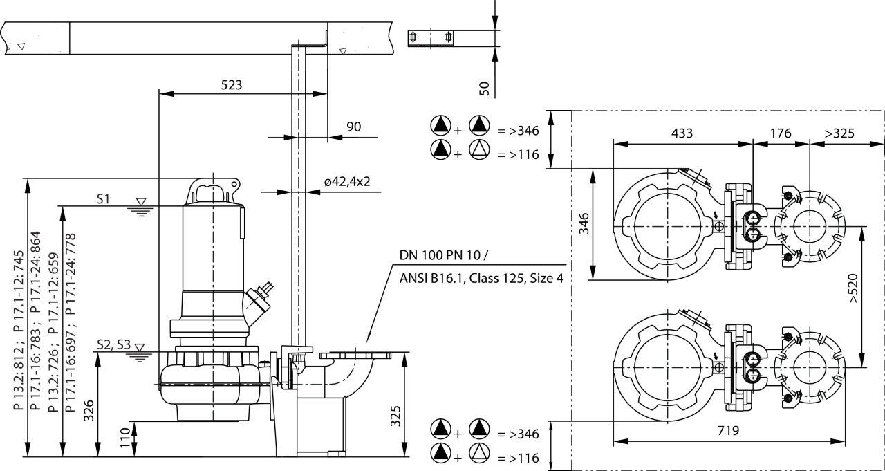 Wilo-Rexa PRO C10-51.. - Стационарная установка в погруженном состоянии