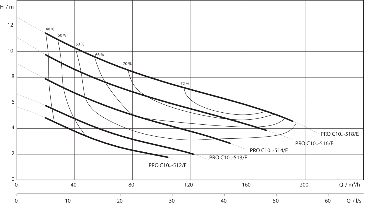 Характеристики согласно ISO 9906, приложение A. Указанный коэффициент полезного действия соответствует гидравлическому коэффициенту полезного действия.