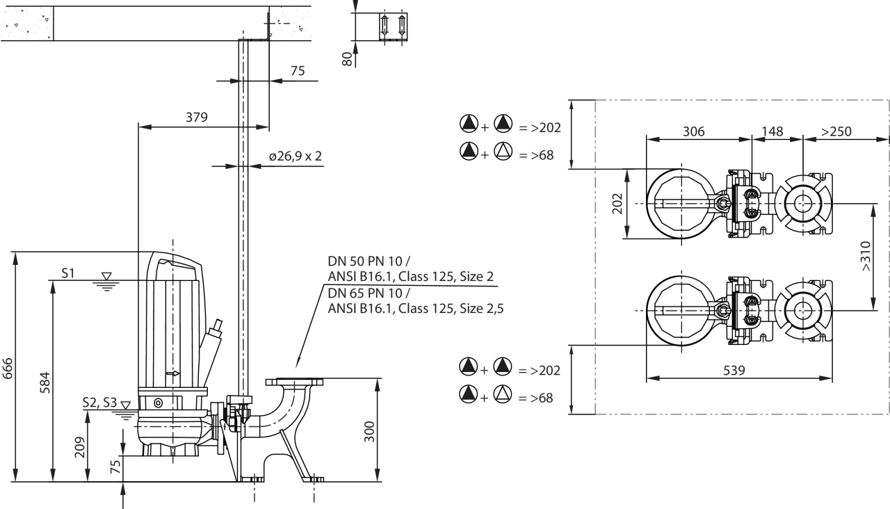 Wilo-Rexa PRO V05-22.. - Стационарная установка в погруженном состоянии