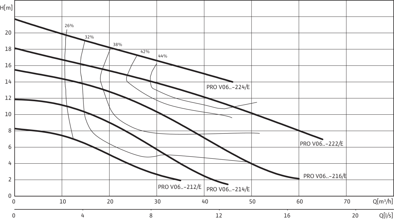 Характеристики Wilo-Rexa PRO V06-21../V06-22.. - 50 Гц - Число полюсов: 2