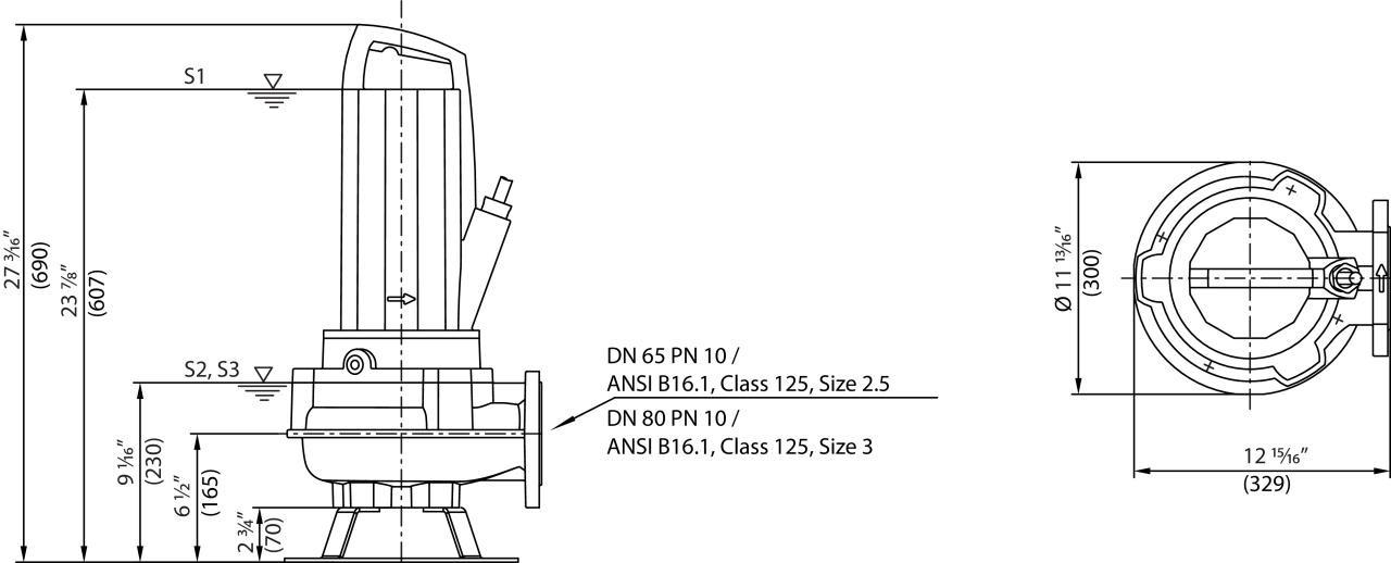 Полностью затапливаемый погружной насос для отвода сточных вод для стационарной и мобильной установки в погруженном состоянии, для перекачивания загрязненной воды и сточных вод с фекалиями. Гидравлический корпус, рабочее колесо и корпус электродвигателя из серого чугуна. Электродвигатель насоса с сухим ротором в трехфазном исполнении с камерой уплотнений, датчиком контроля температуры обмотки электродвигателя и контролем герметичности камеры электродвигателя. Уплотнение со стороны перекачиваемой жидкости и со стороны электродвигателей осуществляется двумя скользящими торцовыми уплотнениями независимо от направления вращения. Кабель электропитания длиной 10 м с кабельным вводом с продольной герметизацией. Все агрегаты серийно со взрывозащитой.