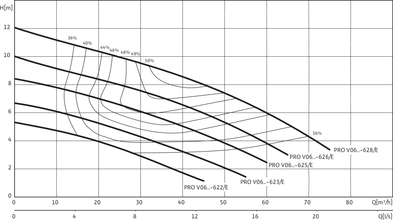 Характеристики согласно ISO 9906, приложение A. Указанный коэффициент полезного действия соответствует гидравлическому коэффициенту полезного действия.