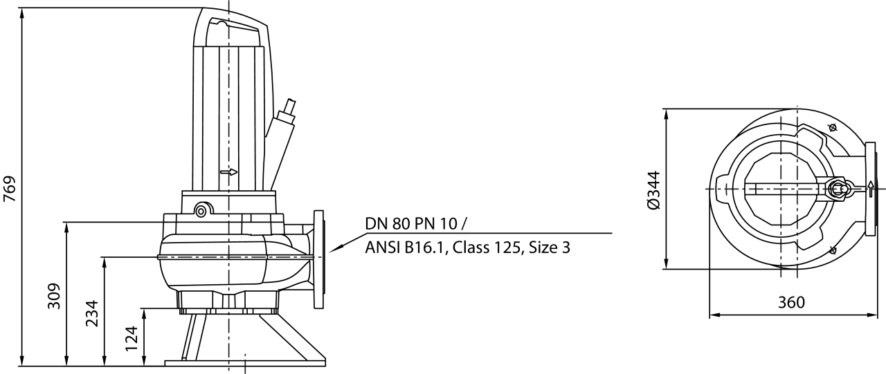 Полностью затапливаемый погружной насос для отвода сточных вод для стационарной и мобильной установки в погруженном состоянии, для перекачивания загрязненной воды и сточных вод с фекалиями. Гидравлический корпус, рабочее колесо и корпус электродвигателя из серого чугуна. Электродвигатель насоса с сухим ротором в трехфазном исполнении с камерой уплотнений, датчиком контроля температуры обмотки электродвигателя и контролем герметичности камеры электродвигателя. Уплотнение со стороны перекачиваемой жидкости и со стороны электродвигателей осуществляется двумя скользящими торцовыми уплотнениями независимо от направления вращения. Кабель электропитания длиной 10 м с кабельным вводом с продольной герметизацией. Все агрегаты серийно со взрывозащитой.