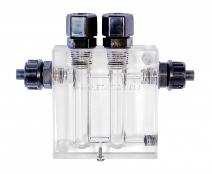 Проточный (OFF-LINE) держатель для датчиков PH и RX, или PH и PT100. Без датчика потока. Максимальная температура проточной жидкости: 45 °C. Максимальное противодавление в системе: 5 бар. Подсоединения: ниппель 3/8” на шланг 10x14. Материал исполнения: плексиглас/полипропилен
