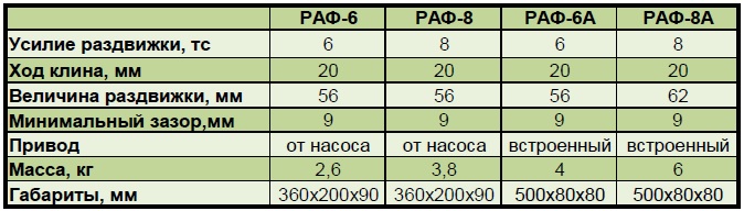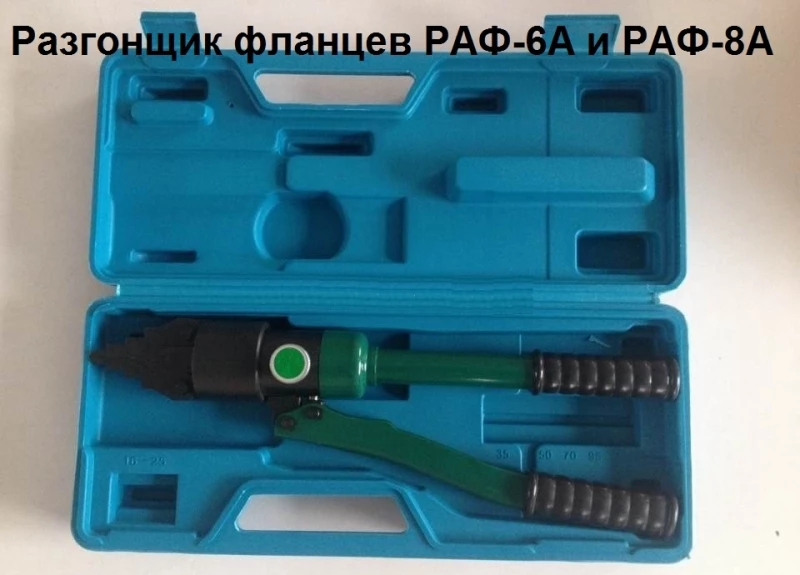 Разгонщики фланцев РАФ-6,РАФ-8,РАФ-6А и РАФ-8А предназначены для разгонки (раздвижки) фланцев труб, фланцев емкостей и других узлов, использующихся в химической, нефтехимической промышленности, а также для раздвижки фланцев в узлах и агрегатах теплоэнергетического комплекса при обслуживании, ремонте и замене уплотнительных прокладок. Разгонщики фланцев РАФ-6,РАФ-8 привод от насоса серии НРГ,НР,НН и НМ. Разгонщики фланцев РАФ-6А и РАФ-8А поставляются в пластиковом чемодане.