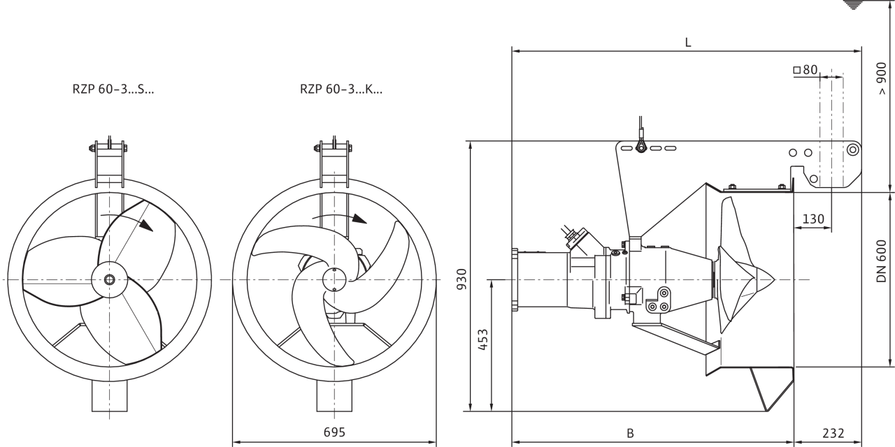 | Тип пропеллера | 3-лопастный пропеллер с самоочищающейся ступицей; изогнут в обратном направлении; благодаря этому защищен от засорения и наматывания |